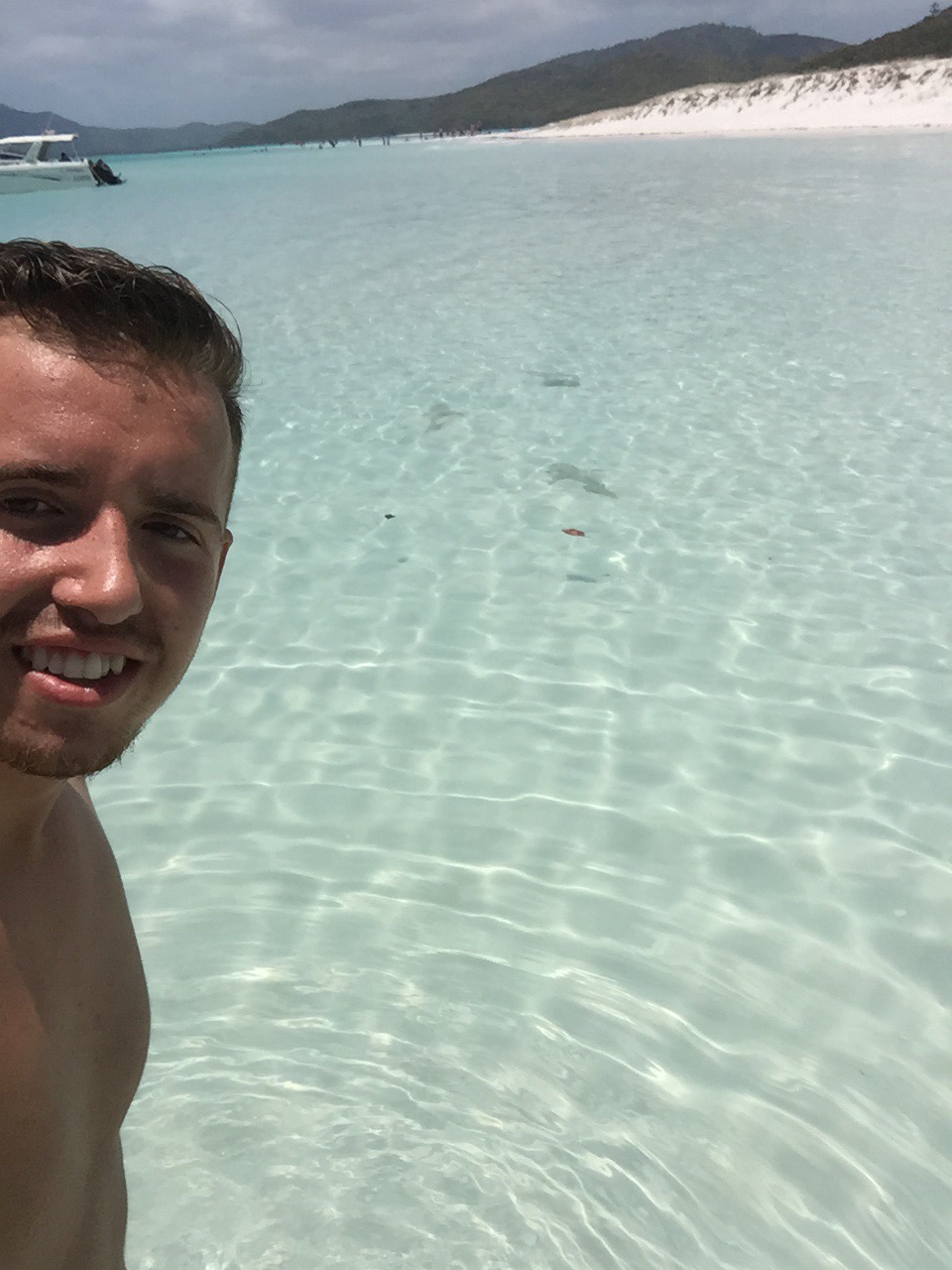 Up we got and off we went to the paradise that Whitehaven Beach… Just wow. It is a fact that this is the purest sand (whitest) in the world and I have never been in sea so clear and blue for miles and miles. Pictures look incredible but just being there was genuinely breathtaking and something I’ll never forget. We swam, chilled, took pictures with the group and listened to a solid amount of Justin Bieber! However, we weren’t alone.. It is imperative that you wear ‘stinger suits’ before entering the sea up the coast in Queensland.. Sting rays and blue jelly fish are the norm, we were also joined at the shore by baby lemon sharks which was pretty cool. There teeth at the back of their mouths and so don’t hurt but none came within touching distance anyway! Myself Jack and George went on a picturesque walk to some rocks on the beach and took some photos so here are some..