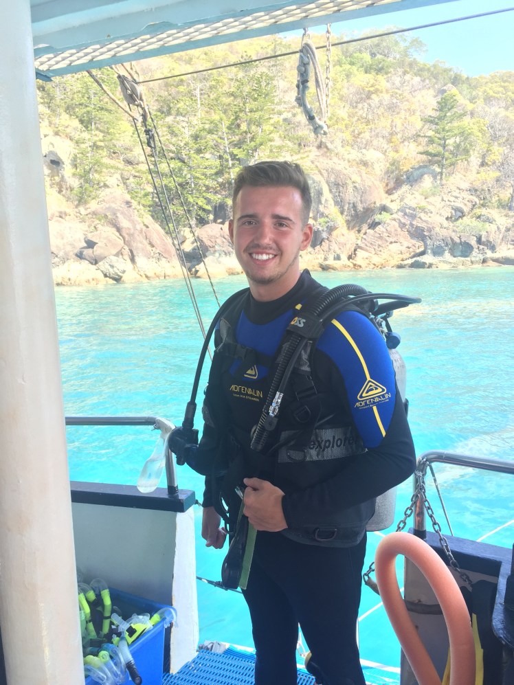 Next up was truly the best activity that I have done in Australia to date .. Scuba Diving. Now everybody related the Great Barrier Reef to Cairns (further north) however it actually spans over 2000km and Whitsundays is a part of this and so technically myself and Joss have done the GBR. First time as a diver was cool anyeay, all the gear, hand signals etc but when we went down it was a whole new life.. Swimming through, underneath and around hundreds of fish in all shapes and sizes. The one thing that got me was how close we were, everything was HD, I could see details on the fish that close like them moving their eyes it just blew my mind. As it was an intro dive (we aren’t qualified) we only went down about 7 metres but still enough to make the ears pop! We did somersaults, explored the coral, saw fishes so abnormal you wouldn’t believe these exist in our waters.. Just incredible, me and Joss often found ourselves looking at each other and shaking our heads in a way to say wow, unbelievable. Definitely found myself a new hobby!!